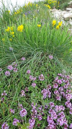 Appelé Hysope dans la région cette plante est très présente au Col de la Colombière. On la retrouve dans les pelouses rocailleuses et même au jusqu'au bord de la route. Très appréciée pour ses propriétés médicinales et sa saveur délicate. Réputée pour soulager les maux de gorge et renforcer les décences immunitaires, c'est aussi une excellente tisane au quotidien.