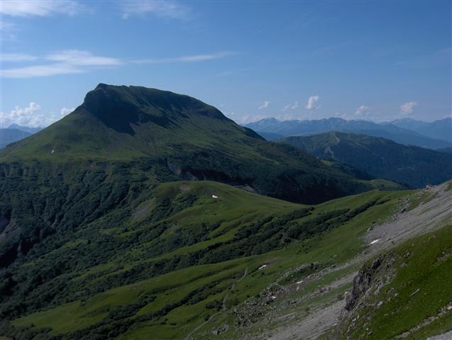 On arrive au Col de Portette. Belle vue sur la vallée, les chalets de Coeurs, le col de Niard et le Grand Croisse Baulet.