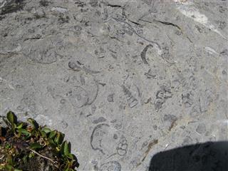 Ces massifs calcaires érodés par les intempéries s'usent. L'eau de pluie acidifiée par le gaz carbonique contenu dans l'air creuse des rigoles parfois profondes appelées lapiaz*. Cette usure laisse souvent apparaitre les restes d'organismes emprisonnés dans le calcaire. Ce sont des fossiles.