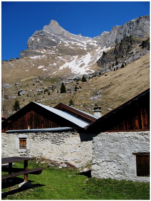 Après cet étrange passage, le chemin franchit un pierrier en quelques épingles puis débouche rapidement sur le petit plateau où sont blottis de petit bâtiments dont le refuge de Varan maheureusement fermé aujourdh'hui.