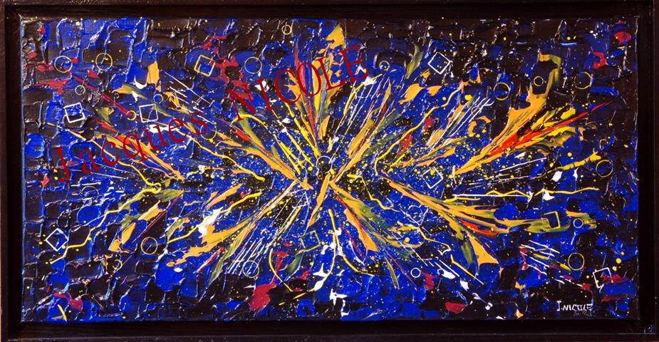 Inspiré par mes randonnées en montagne et à travers la technique de l'Expressionnisme Abstrait, je cherche à capturer la lumière qui jaillit des profondeurs de l'espace.