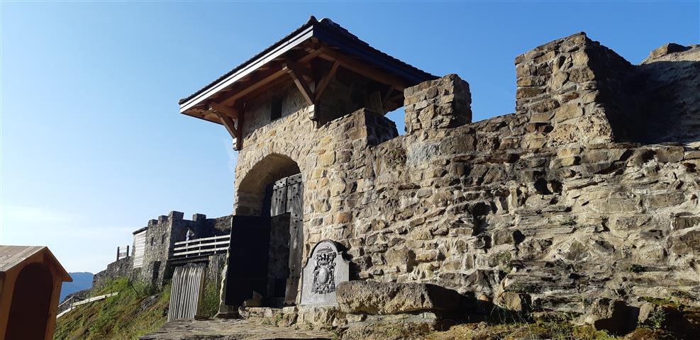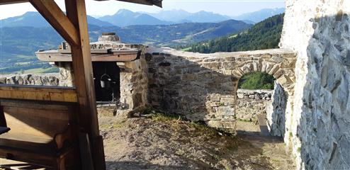 Encore un quart-d'heure pour atteindre les ruines du Château situées à une altitude de 956 m sur un éperon rocheux dominant la vallée et offrant un magnifique panorama.